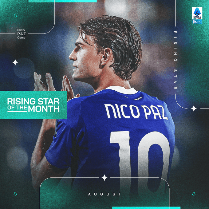 官方:科莫攻击手尼科-帕斯获得意甲8月最佳新星奖